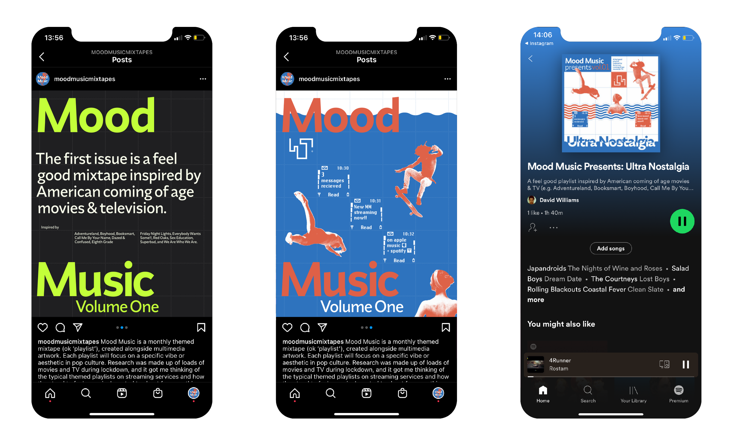 Mood Music is a series of monthly themed playlists/mixtapes, created alongside multimedia artwork.