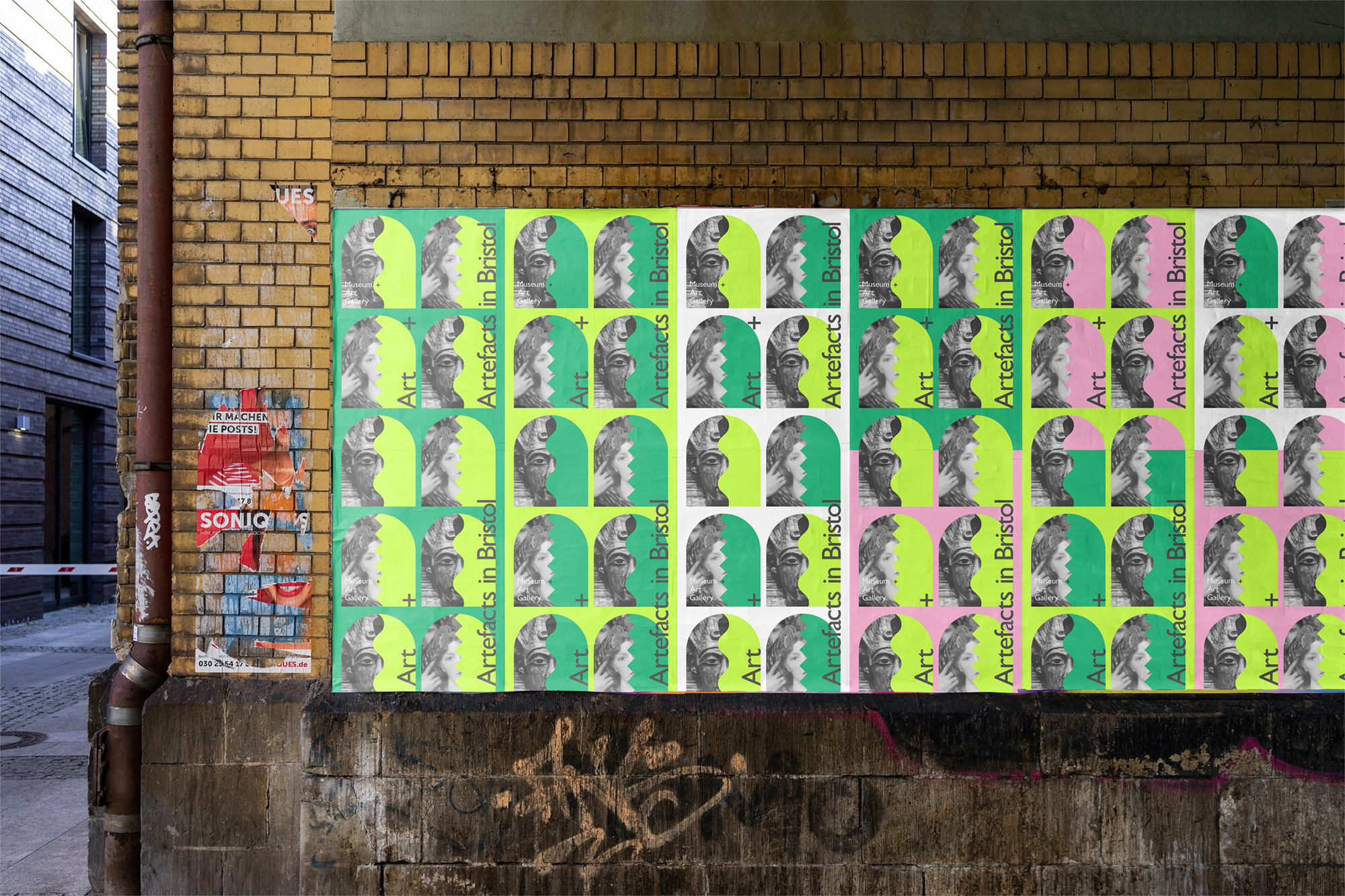 For environmental applications, I was keen to allow freedom to reinforce just how diverse the audience and collection is. ‘Art + Artefacts in Bristol’ is used as a tagline so that the city name does not disappear entirely.